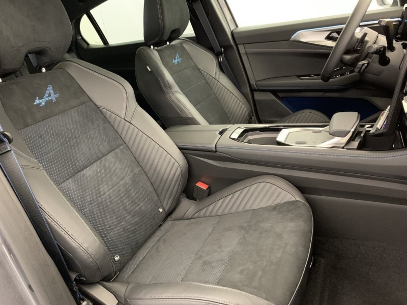 - Sellerie mixte Alcantara avec surpiqures bleues et logo Alpine lumineux