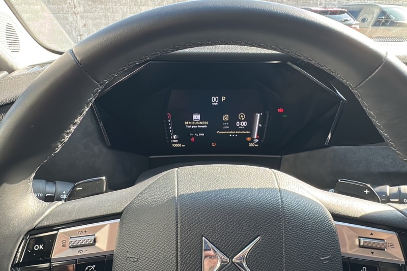 - Intérieur Alcantara Noir : Planche de bord en Alcantara Ciel de pavillon clair Sellerie en Tissu Tressé Basalte avec Alcantara et toile DS Décors de panneaux de porte Chrome guilloché Volant cuir Fleur Mistral Console en toile DS Noir Basalte Panneaux de porte en Alcantara et Toile DS Noir Basalte